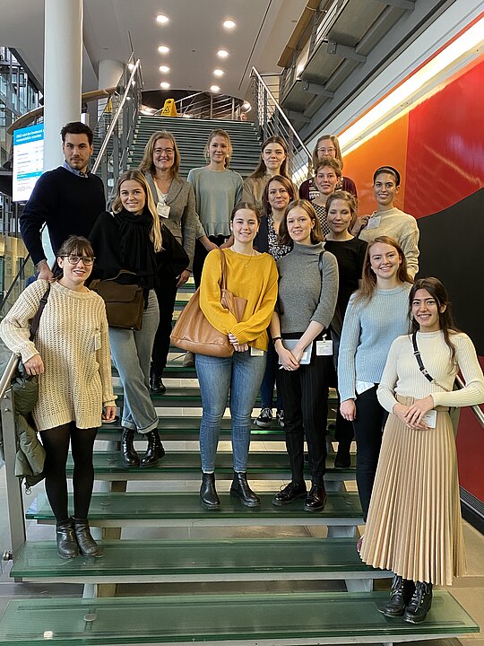 Am 26. November 2019 hatten die Teilnehmer*innen der ART WALKS Gelegenheit, die eindrucksvolle Firmensammlung der Düsseldorfer ERGO Group näher kennenzulernen. Unter sachkundiger Führung durch Kurator Franz Krebber erfuhren wir aus erster Hand Näheres zum Entstehen der beiden knapp 7 Meter großen Gemälde von Gerhard Richter in der Eingangshalle des alten Gebäudes sowie zur über 20 Meter langen Wandzeichnung von Sol LeWitt im neuen Eingangsfoyer. Über 3.000 Werke umfasst die bedeutende Corporate Collection der kunstsinnigen Versicherung am Victoriaplatz, die auf allen Etagen des riesigen Gebäudes den Alltag ihrer vielen Tausend Mitarbeiter*innen damit künstlerischer und kreativer gestaltet. Nach der Führung gab es durch den hausinternen Kunsthistoriker und Senior Underwriter Andreas Berndt eine spannende Einführung zur Geschichte der ERGO und zum Tätigkeitsfeld Kunstversicherung im Allgemeinen. Nach dem nur wenige Tage zuvor stattgefundenen spektakulären Einbruchdiebstahl wurden auch hier all unsere Fragen kompetent beantwortet. Ein ART WALK der besonderen Art, der einigen Kommiliton*innen Lust machte, die Praxis eines Kunstversicherers auch im Rahmen eines Praktikums näher kennenzulernen!