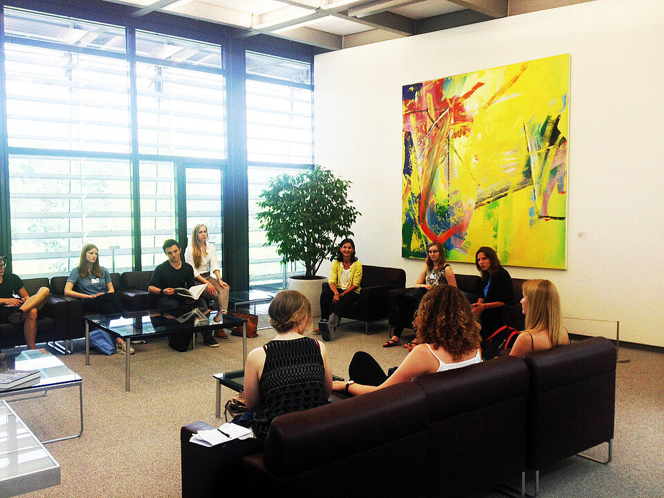 Ein exklusiver Kreis an KuK-Studierenden konnte bei einem beeindruckenden ART WALK in der Konzernzentrale der Bayer AG in Leverkusen unter sachkundiger Führung durch die Kuratorin Andrea Peters die Sammlung des internationalen Unternehmens kennenlernen. Dabei ging die Tour keineswegs durch quasimuseale, abgetrennte Räumlichkeiten, sondern führte uns geradewegs durch die vielen langen Flure und Gänge der Mitarbeiterbüros bis ganz hinauf in die Vorstandsetage. Kein Wunder, dass wir bei unserem ART WALK auf Schritt und Tritt durch professionelles und überaus freundliches Wachpersonal begleitet wurden! Die 15 Studierenden konnten sich auf diese Weise vor Ort ganz buchstäblich ein Bild machen von den vielfältigen Funktionen von Kunst in einer ‘Corporate Collection’: Neben Repräsentationszwecke treten die Mitarbeitermotivation sowie die Förderung junger Kunst. Großer Dank gebührt der engagierten und kompetenten Kunstreferentin der Bayer AG, Andrea Peters, die uns auf charmante Art und Weise damit auch ein weiteres Betätigungsfeld für Kunsthistoriker*innnen vor Augen geführt hat.